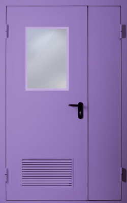 Полуторапольная противопожарная дверь с вентиляцией и стеклом EI 60 (RAL 3015)
