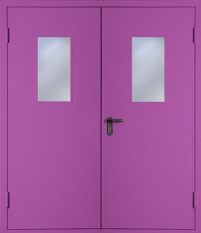 Двупольная противопожарная дверь со стеклом EI 60 с порошковым напылением (RAL 4006)