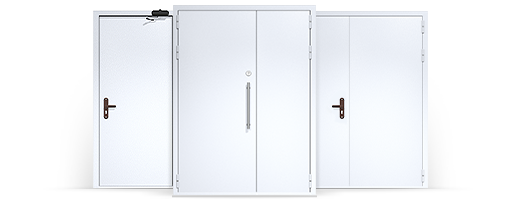 Конструкция дверей для технических помещений схожа с конструкцией тамбурных дверей, они состоят из полотна, коробки, внутренних деталей, фурнитуры. Основа выполнена из профильной трубы, размеры зависят от места установки.
